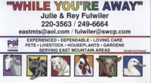 Contact While You're Away for quality and loving care of your animal family and plants. We are dependable and honest and fabulous references are available upon request!